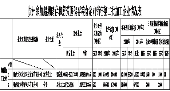 贵州省参加超期储存和蓆茓囤储存粮食定向销售加工企业第二批名单公示