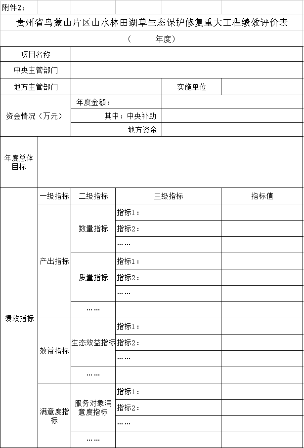 2. 贵州省乌蒙山区山水林田湖草生态保护修复重 大工程绩效评价表