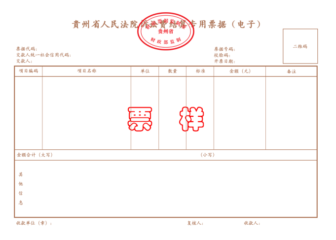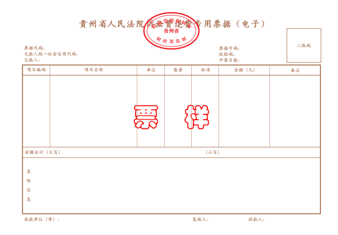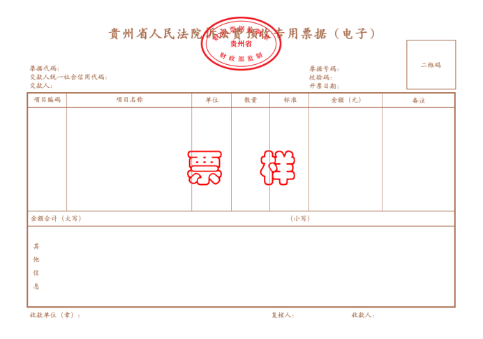 2.《贵州省人民法院诉讼费结算专用票据(电子)》(票样)