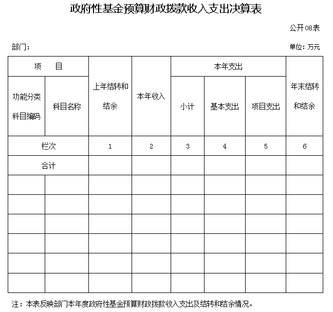8.上年结转和结余:指以前年度支出预算因客观条件变化未执行完毕、结转到本年度按有关规定继续使用的资金,既包括财政拨款结转和结余,也包括事业收入、经营收入、其他收入的结转和结余。