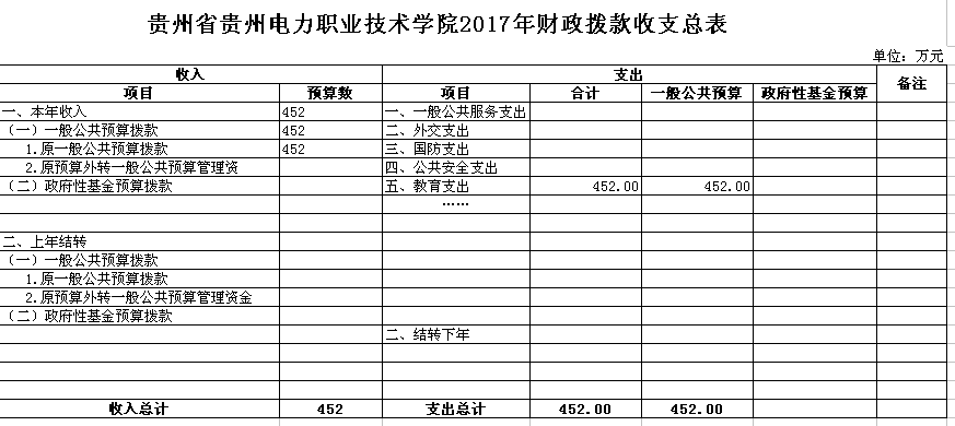 财政拨款收支情况说明:我单位本年一般公共预算拨款为452万元;一般公共预算支出452万元,均为教育支出。