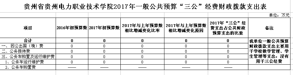 附件:2017年部门预算及“三公”经费预算公开样表-贵州电力职业技术学院.xls