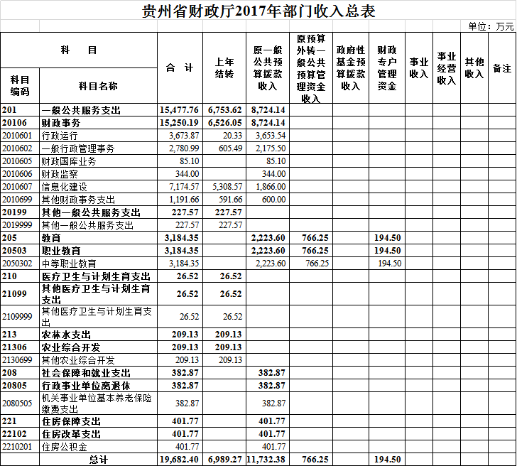 3.一般公共服务(类)财政事务(款)一般行政管理事务(项):指财政厅机关及下属事业单位开展全省非税改革及票据印刷、资产清查、农村综合改革、会计工作管理等未单独设置项级科目的其他项目支出。