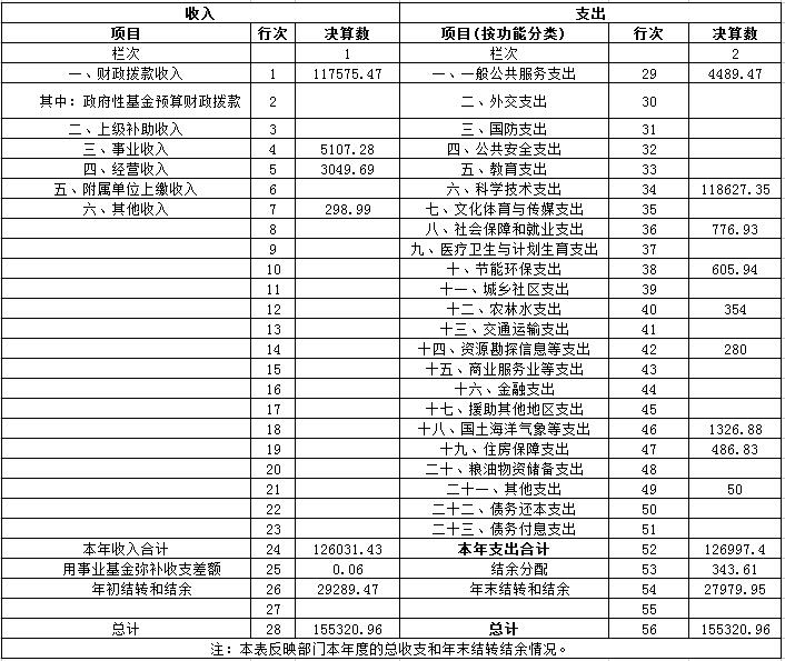 贵州省科学技术厅(省知识产权局)2015年度收入合计为155320.96万元。其中: