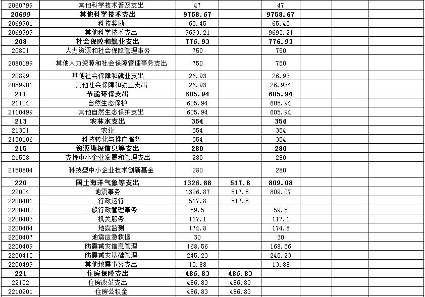 5、住房保障支出:反映用于住房方面的支出,科学技术厅决算中主要涉及住房改革支出1个款级科目,