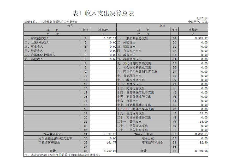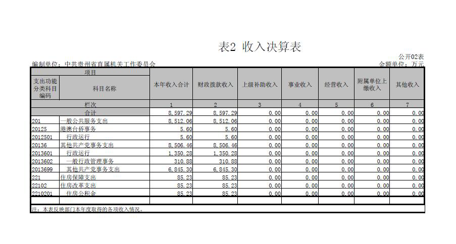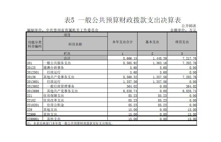 二、中共贵州省直属机关工作委员会2016年度部门决算公开报表(见附表)