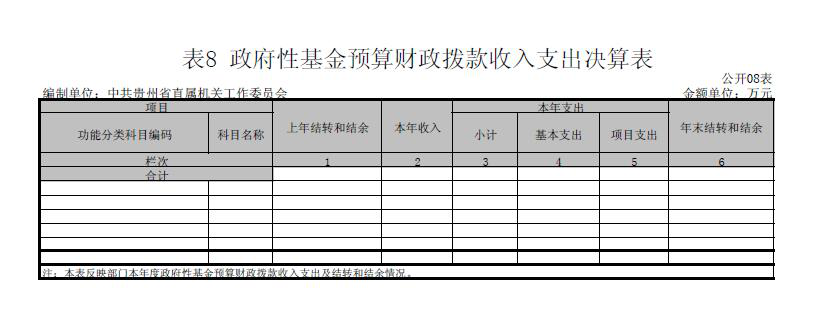 中共贵州省直属机关工作委员会无政府性基金收支情况。
