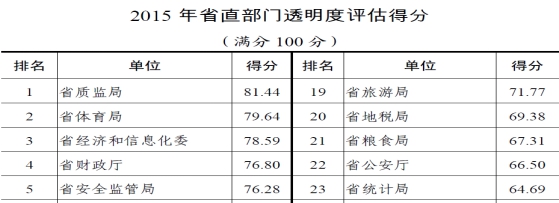 体验金 在2015年贵州省政府透明度第三方评估结果中的排名情况