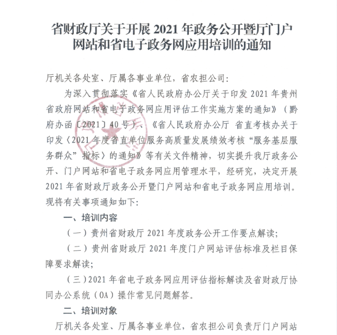体验金 关于开展2021年政务公开暨厅门户网站和省电子政务网应用培训的通知