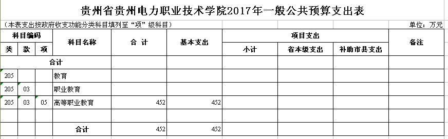 附件:2017年部门预算及“三公”经费预算公开样表-贵州电力职业技术学院.xls