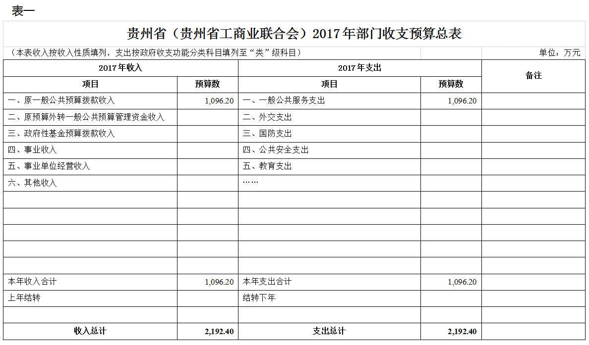 一、贵州省工商业联合会2017年度部门收支预算总表