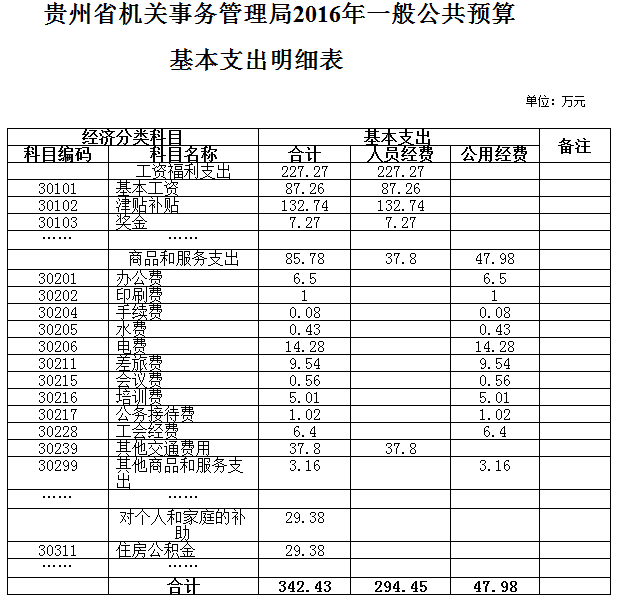 3、贵州省机关事务管理局2016年度一般公共预算基本支出明细表