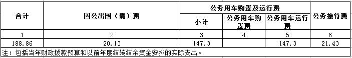2015年度“三公”经费一般公共预算财政拨款支出决算188.86万元,比上年减少14.11万元,降低6.56%,原因在于:单位厉行节约,2015年度未购买公务用车,公务用车运行维护及公务接待费有所下降。具体情况如下: