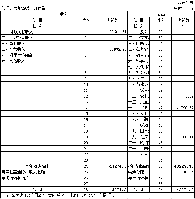 2014年度支出决算总额43225.46万元,其中:农林水支出1369万元,资源勘探信息等支出41790.32万元,住房保障支出66.14万元。