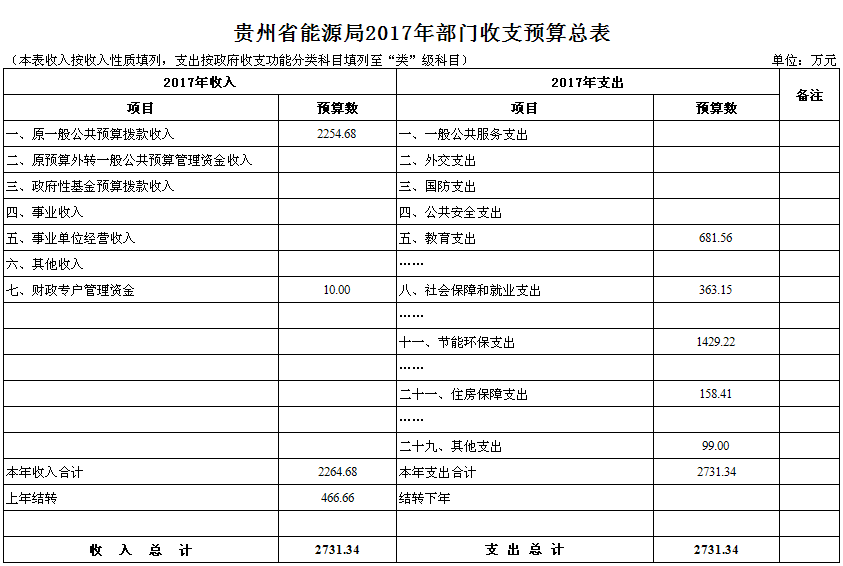 2.关于贵州省能源局2017年部门收支总体情况说明
