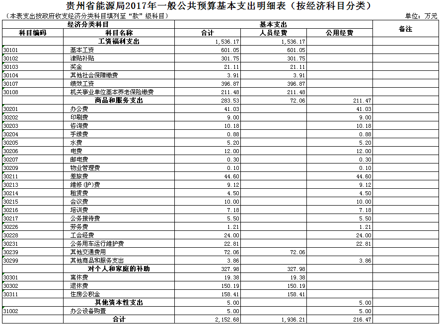 2.关于贵州省能源局2017年一般公共预算基本支出情况说明