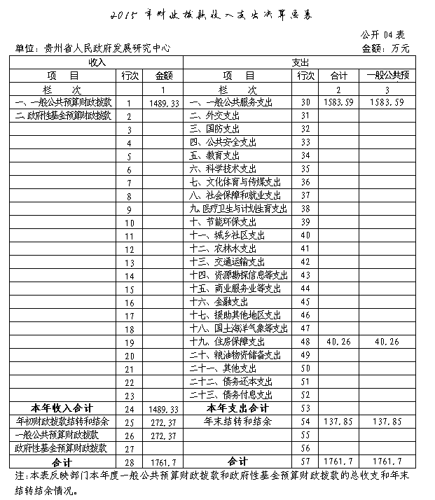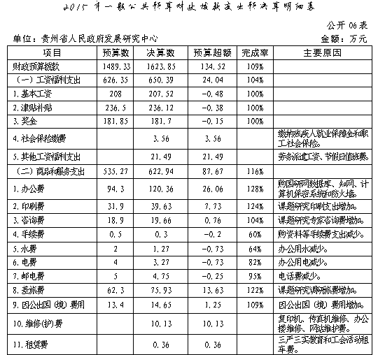贵州省人民政府发展研究中心2015年部门决算及“三公”经费决算信息公开表.xls