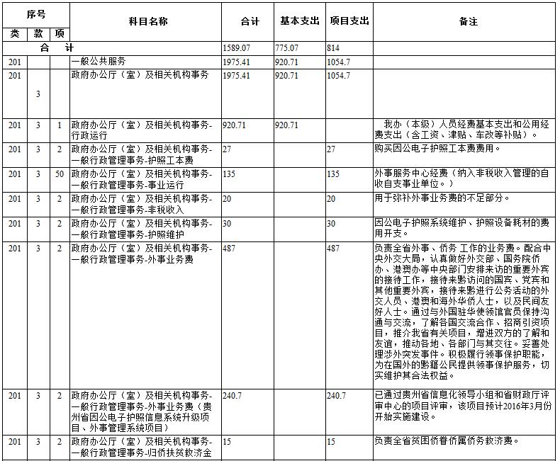 1.贵州省外事办公室2016年度部门预算收支预算总表
