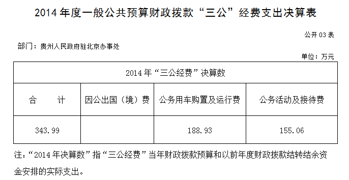 “三公经费”财政拨款支出343.99万元,其中:公务活动及接待费支出155.06万元,公务用车购置及运行费支出188.93万元,具体情况如下: