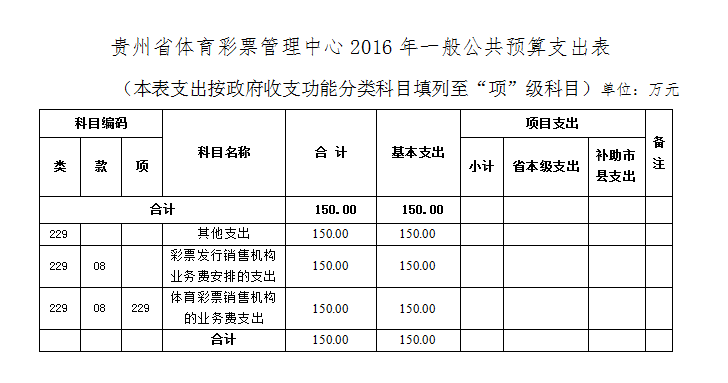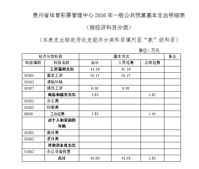 原口径一般公共预算安排的基本支出,主要是贵州省体育彩票管理中心在编22人基本工资、绩效的60%部分及工会经费。