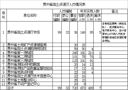 3、贵州省国土资源厅人员编制及2015年年末实有人数
