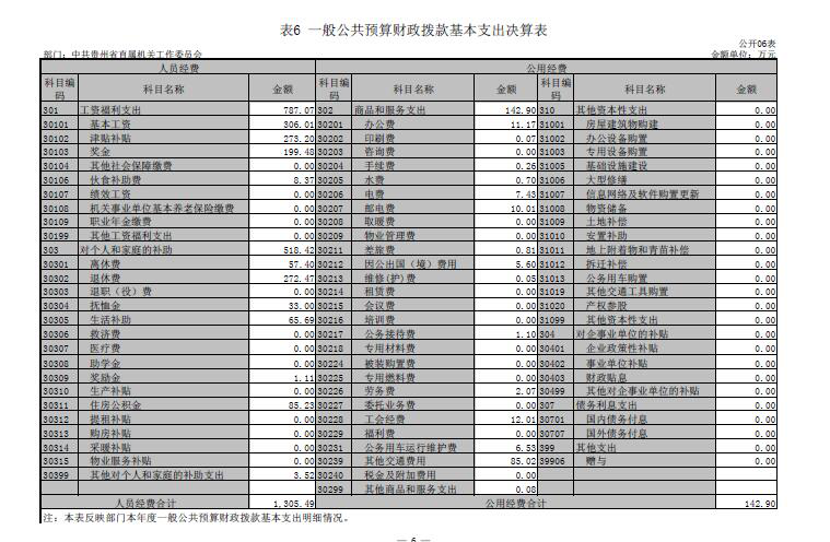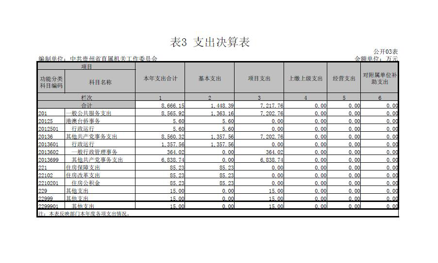 二、中共贵州省直属机关工作委员会2016年度部门决算公开报表(见附表)