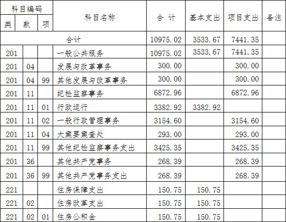 2、一般公共服务(类)纪检监察事务(款)行政运行(项):指保障机构正常运行、开展日常工作的基本支出。