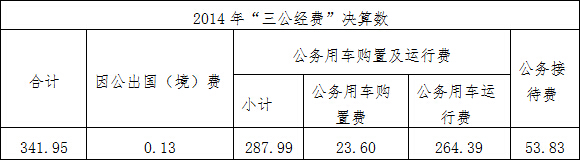 注:“2014年决算数”指“三公”经费当年财政拨款预算和以前年度财政拨款结转结余资金安排的实际支出。