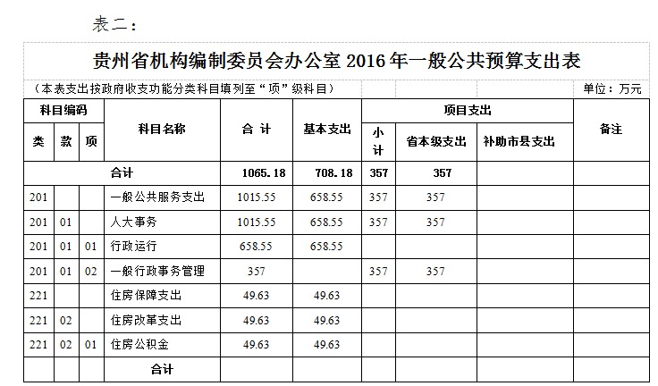 二、贵州省机构编制委员会办公室2016年一般公共预算支出表