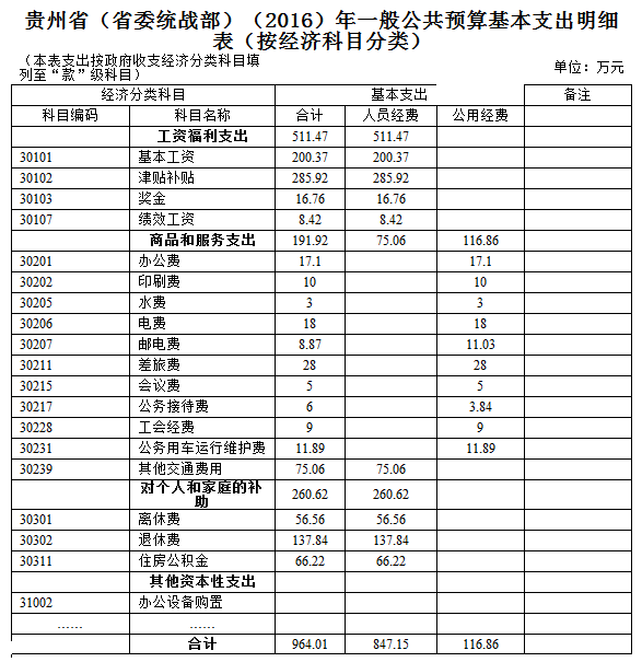 基本支出964.01万元,是用于保障部机关及所属事业单位等机构正常运转、完成日常工作任务的支出,具体按经济分类科目列表如下: