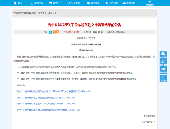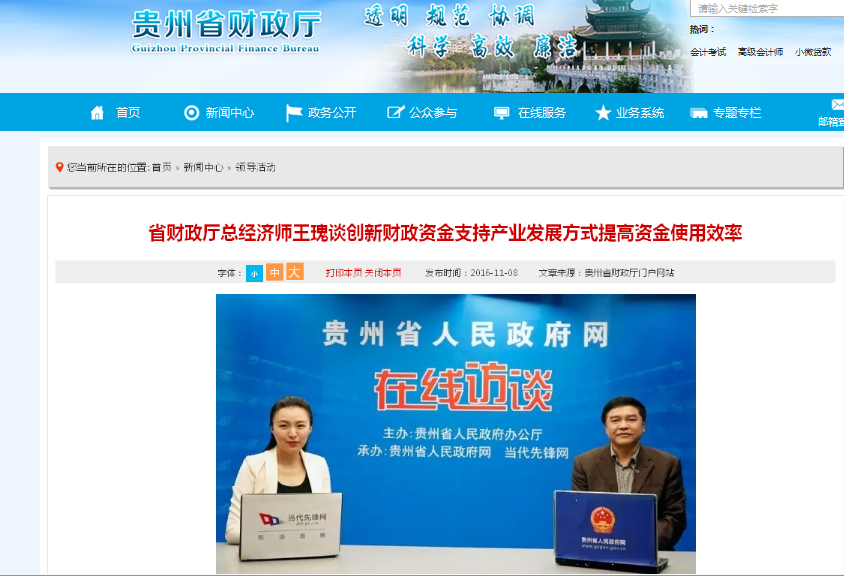 一是以体验金 门户网站为主要平台,借助贵州财政会计网、贵州省政府采购网等其他公开手段,及时公开、更新、维护各类财政信息、财政业务办事指南、审批事项受理流程以及人员招录、会计考试考务等信息,行政审批事项办理流程和重要法规主动上墙公示。二是积极借助贵州省人民政府网、当代先锋网等媒体力量做好财政政策新闻宣传发布。2016年4月29日,举办营改增新闻通气会,会上介绍了我省营改增试点工作总体情况。7月29日,我厅联合省发改委、省政府金融办、PPP联盟负责人在省委组织部培训中心4楼第二会议室召开“贵州省促进民间投资和PPP项目合作推进会新闻通气会”,介绍PPP推进大会的目的、意义、特点及活动安排等。11月8日,在线人民网访谈“创新财政资金支持产业发展方式提高资金使用效率”,对相关民生问题进行答疑。11月22日,召开“贫困县统筹整合使用财政涉农资金试点工作情况新闻发布会”并介绍有关情况。三是加强与中央和地方有影响的重点刊物的联合宣传工作,保质保量完成各类媒体专访、定期约稿等新闻宣传任务, 接受新华社贵州分社、中国财经报、中国会计报、新理财、中国政府采购报等新闻媒体采访,对当前财税改革的重点工作进行宣传报道;做好突发事件舆论引导工作,加强媒体采访管理。四是继续抓好《体验金 关于进一步规范厅发文和内部文件运转有关问题的通知》落实工作,加大文件制作中形成的信息公开力度,全面清理规范性文件。2016年我厅对1979年至2015年制定的规范性文件进行了全面清理,涉及文件数287个,经清理,决定废止55件,宣布失效13件,确认继续有效219件。8月9日印发《体验金 关于公布规范性文件清理结果的公告》(黔财法〔2016〕8号),并及时在体验金 官网及时进行公布。2016年制定的10件规范性文件全部按要求登记编号、备案。